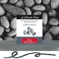 L’encre d’écriture Gris Galet de Jacques Herbin se distingue par une teinte grise douce et minérale, inspirée des galets polis par le temps. Subtile et élégante, cette couleur offre une alternative raffinée aux noirs et bleus traditionnels, idéale pour une écriture sobre, moderne et nuancée.